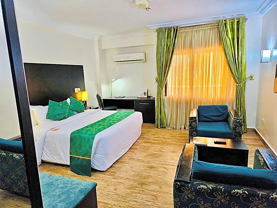 Nestling in Abuja’s Cadastral Zone, Mirabel Restaurant anchors the on-site dining scene with African and American flavors, a tasty way to fuel urban adventures. The outdoor rooftop pool is adults-only and season-ready, finished with a playful waterslide for a splash of fun after a day of exploring. Wellness options include a Spa, Spa tub, Steam room, and Sauna, all available for an extra charge.